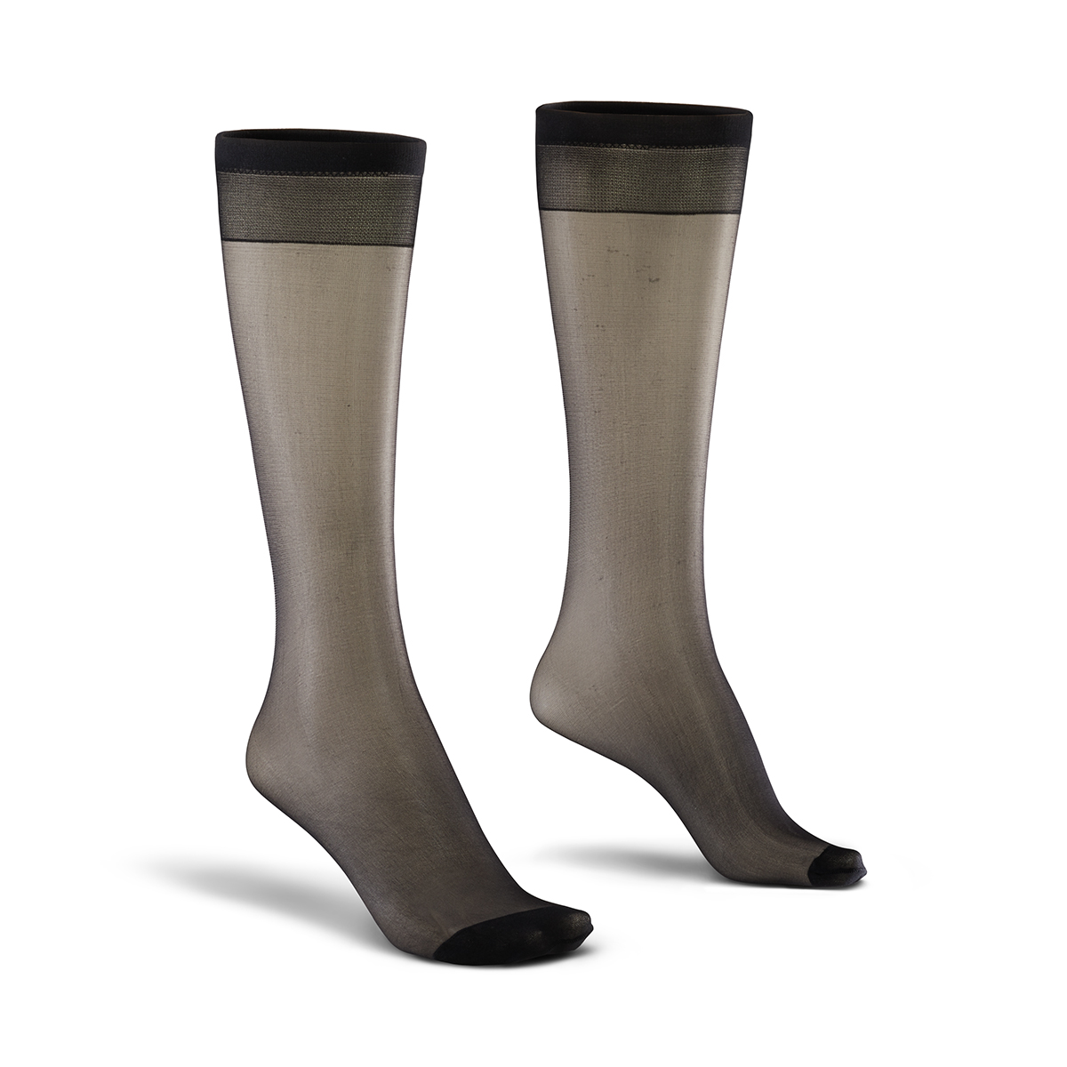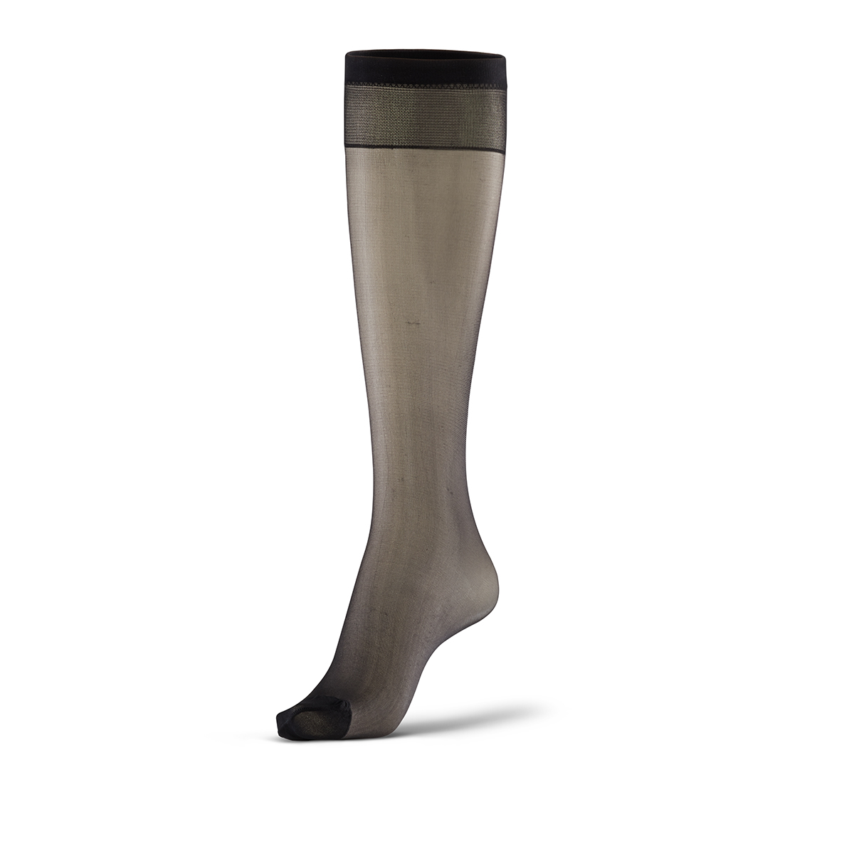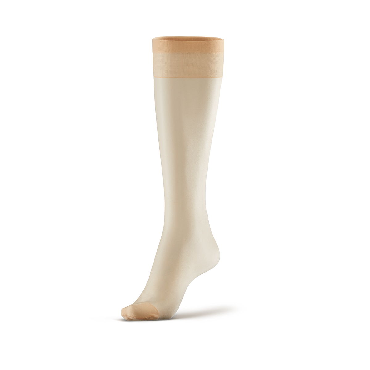 İnce, parlak, burnu dayanıklı ten rengi dizaltı çorabı.